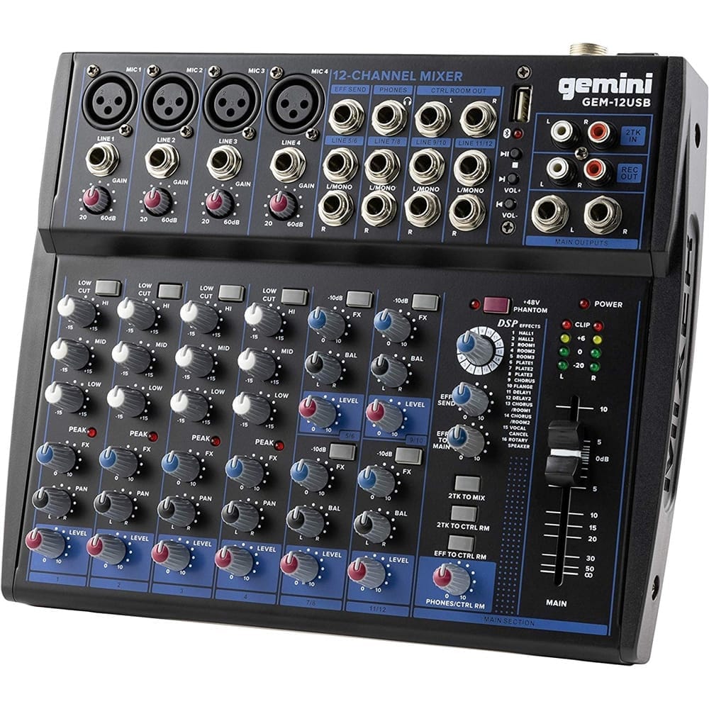 115,00€Il nuovissimo mixer GEM-12USB è progettato per rendere semplice il podcasting. Dotato di streaming Bluetooth, riproduzione via USB, audio personalizzabile e mixer a 2 bus con 12 ingressi. Il GEM-12USB porta in viaggio registrazioni all’avanguardia di qualità professionale. Ti offre tutti i controlli di cui hai bisogno. Questo mixer è stato creato per fondere un’interfaccia intuitiva con un suono premium. I 4 preamplificatori microfonici con alimentazione Phantom all’avanguardia sono dotati EQ a 3 bande con controllo del volume dedicato. Puoi personalizzare il tuo suono con un controllo del delay dedicato e l’uscita cuffie ha un controllo del volume dedicato. Questo mixer mic/line a 2 bus con design ULN a bassissima interferenza offre tutto ciò che occorre per il missaggio professionale.