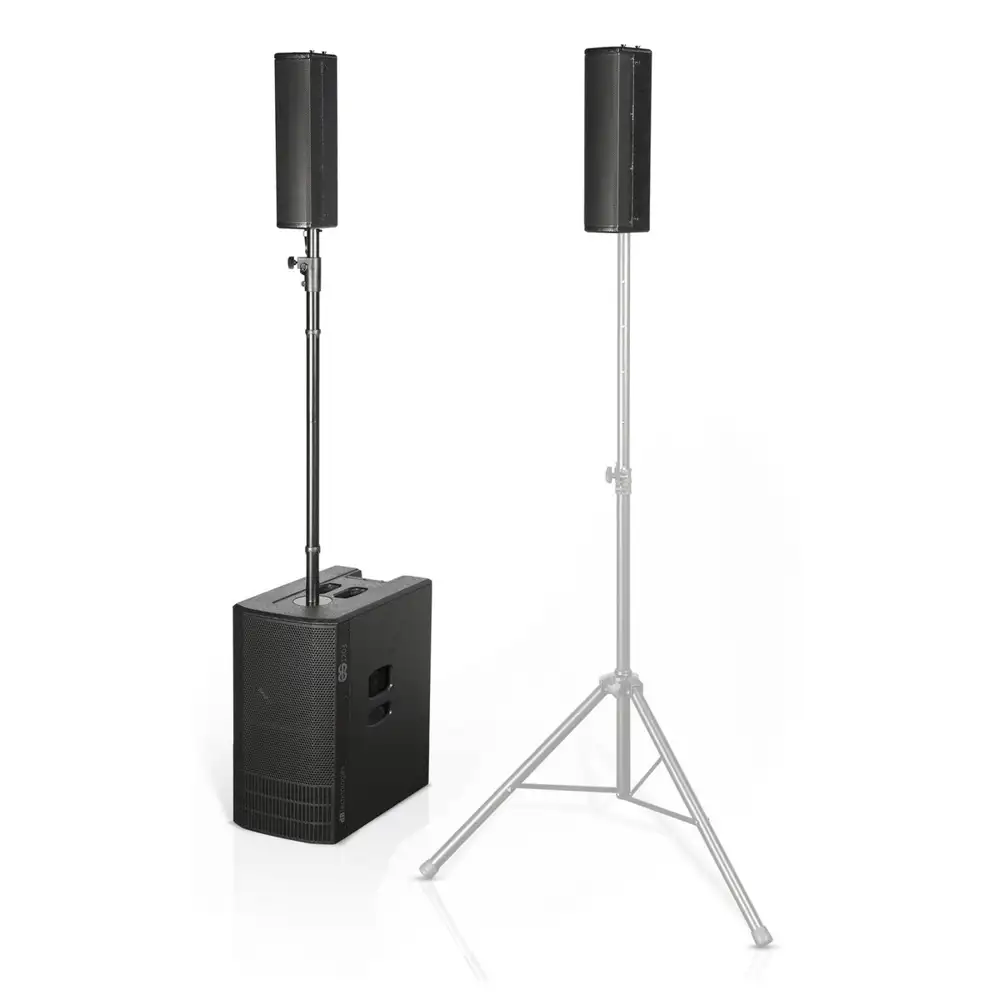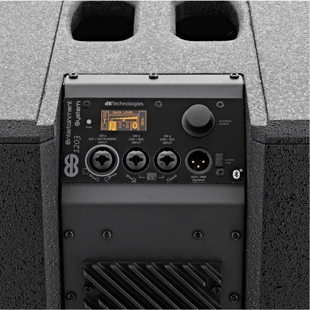 | ES 1203 è un sistema stereo composto da 2 top passivi in legno e un subwoofer attivo equipaggiato con 2 coni da 12″. Il subwoofer ospita al suo interno l’amplificatore di ultima generazione Digipro G4, da 2400W di picco. Un potente DSP (controllato da un’interfaccia utente dedicata) gestisce tutte le funzioni del mixer digitale di bordo, nonché le configurazioni del sistema (mono, stereo o doppia colonna) e permette la scelta tra due modalità di sterzata differenti (far, near) rendendo il dB Technologies ES 1203 un sistema totalmente personalizzabile e adattabile ad ogni esigenza. Ogni satellite superiore è dotato di 4 mid-woofer da 4″ ciascuno, il cui allineamento consente una copertura verticale asimmetrica. Il mixer integrato dell’ES 1203 è un mixer a 5 canali. Il primo canale è dotato di un connettore Mic/Instrument combo balanciato/sbilanciato con un filtro anti-feedback regolabile, compensazione dell’impedenza e guadagno del microfono con 3 posizioni (0, +10, +20dB). Il secondo e terzo canale sono ingressi Mic / Line con connettore combinato bilanciato / sbilanciato. Questo permette al sistema di gestire fino a 3 linee microfoniche alla volta. L’ES 1203 possiede al suo interno anche un modulo Bluetooth per ricevere audio da dispositivi esterni portatili e un’uscita Mix bilanciata/Aux per collegare uno stage monitor o una cassa. In modalità Doppia colonna, questa uscita agisce come una fonte per un altro ES1203 rendendolo un sistema stereo ancor più potente. Il sistema può essere completato con DP-ES1203, un palo di legno, che livella il disegno complessivo del sistema rendendolo discreto ed elegante per installazioni permanenti o eventi che richiedono maggior design. |