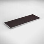 Il ripiano è in Multistrato di betulla con superficie superiore resinata; Il profilo è in alluminio anodizzato con altezza 38 mm e spessore 3mm.